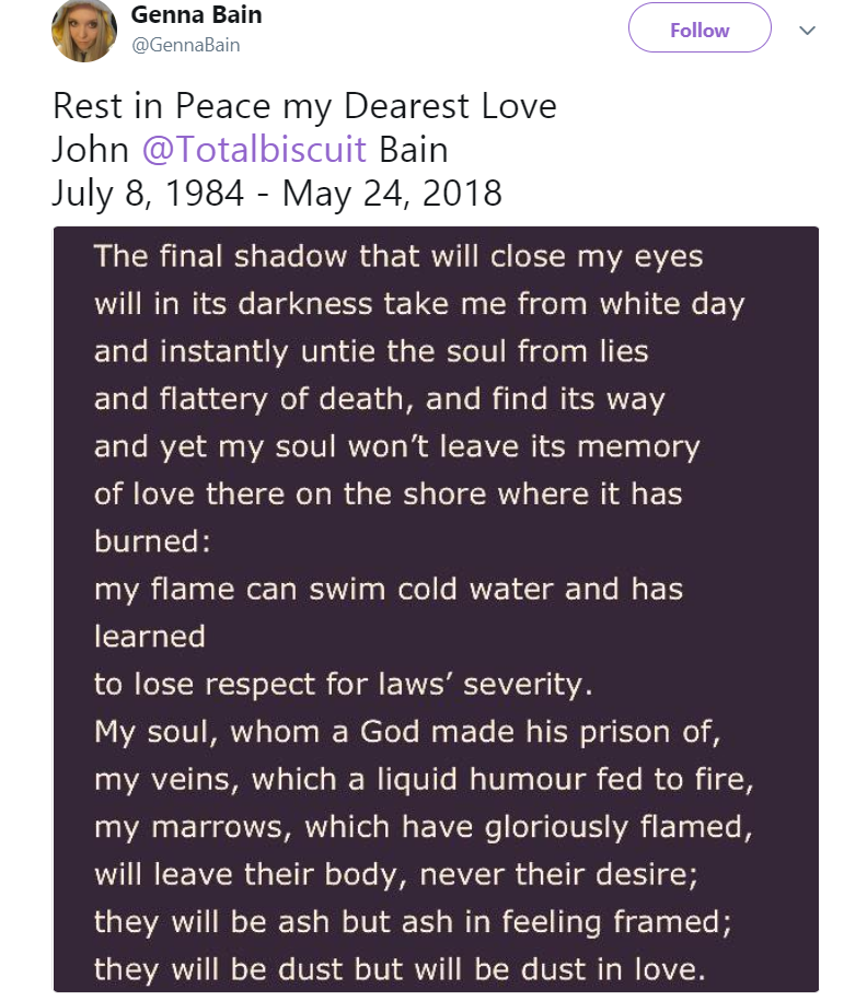 Rest in peact, TotalBiscuit.